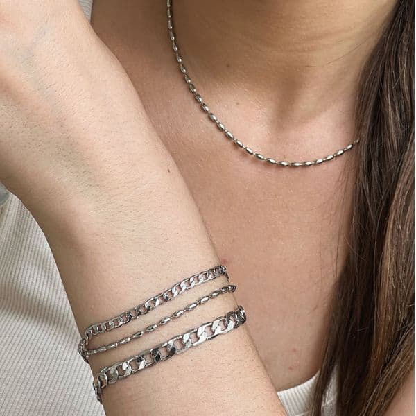 Modernas e versáteis, as Pulseiras Corrente no Ródio combinam elegância com um toque contemporâneo. Com acabamento refinado e brilho sofisticado, são perfeitas para complementar qualquer estilo.